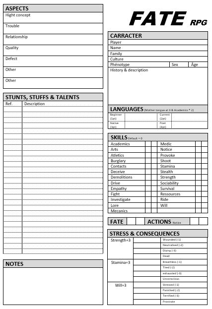 Le seul truc qui n'est pas passé chez moi pour Fate, c'est les blessures qui sont traitées comme des aspects à invoquer.