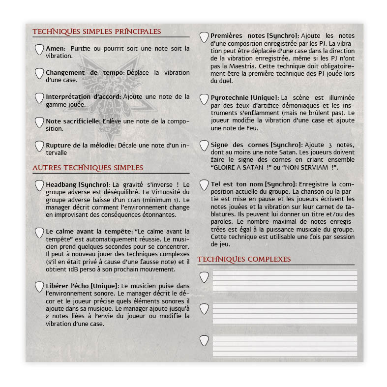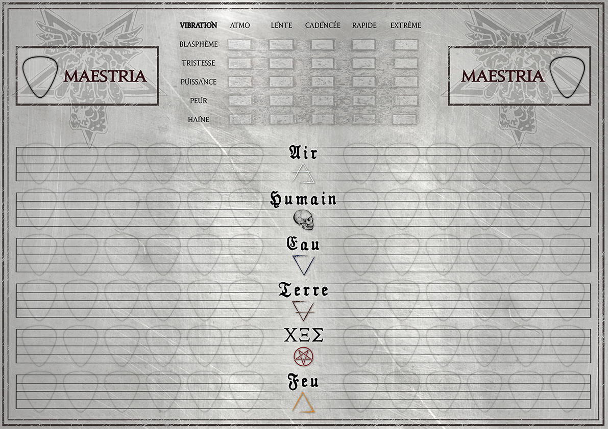 L’idée était donc à la fois de créer un système pertinent reproduisant les principes de l'excellent Guitar Hero en JdR, qui allierait ces principes :