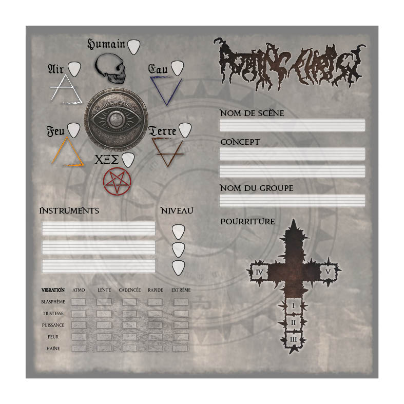 Le solfège est un des principaux langages utilisés pour comprendre la musique, mais nous en proposons un autre pour mieux l’adapter dans le cadre du jeu de rôle. Pour simplifier les choses, universaliser ses principes et ne pas réserver Rotting Christ aux seuls spécialistes musicaux, les règles divisent la musique en plusieurs notions :