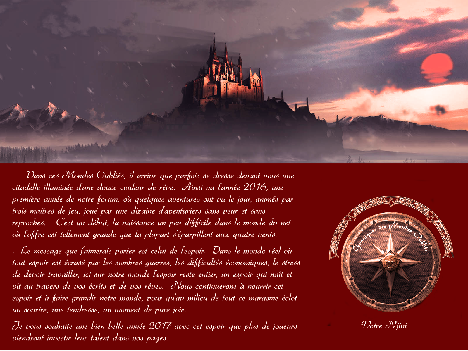 Ces conseils ont peut-être l'air un peu rudes, mais il ne faut pas oublier que le monde merveilleux des parties par forum est à ce prix : une fois qu'on a trouvé un cercle de joueurs qui sont sur la même longueur d'onde, ça peut être très fort, et on se fait même parfois des vrais amis !