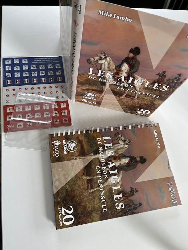 Nous venons de recevoir l’exemplaire de vérification des Aigles de l’usine ! Pour rappel, Les Aigles de Napoléon en Péninsule, de l’auteur Mike Lambo, propose une expérience du wargame en solitaire sous forme de livre. Parfait pour les grognards isolés et les jeunes recrues qui voudraient s’initier aux jeux de stratégie historique !