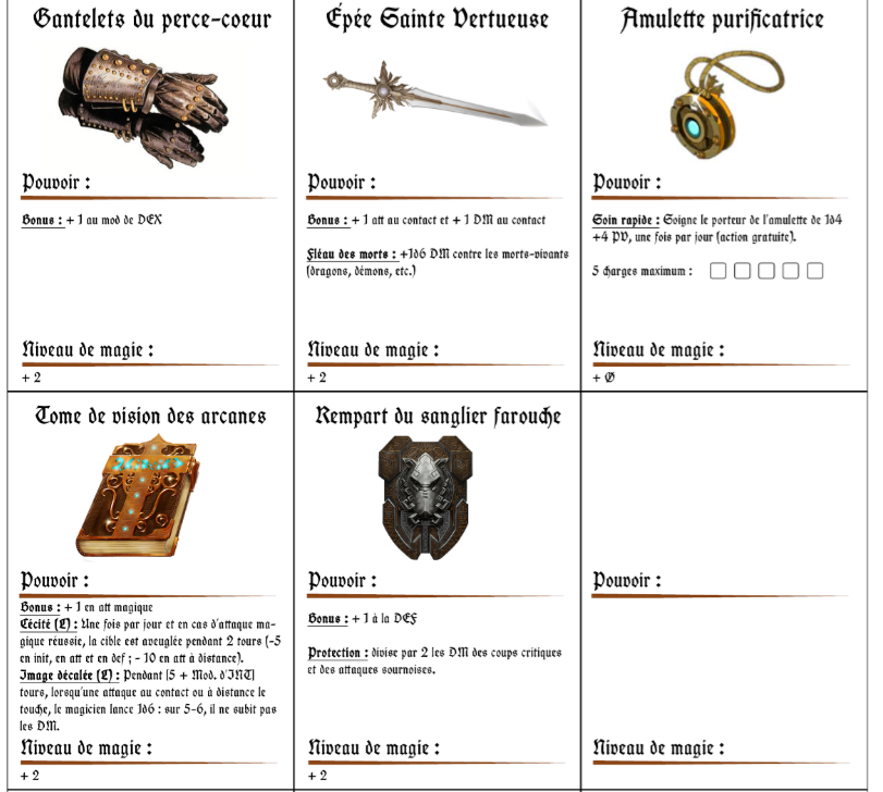Tadaaaam, voilà les cartes pour les objets magiques