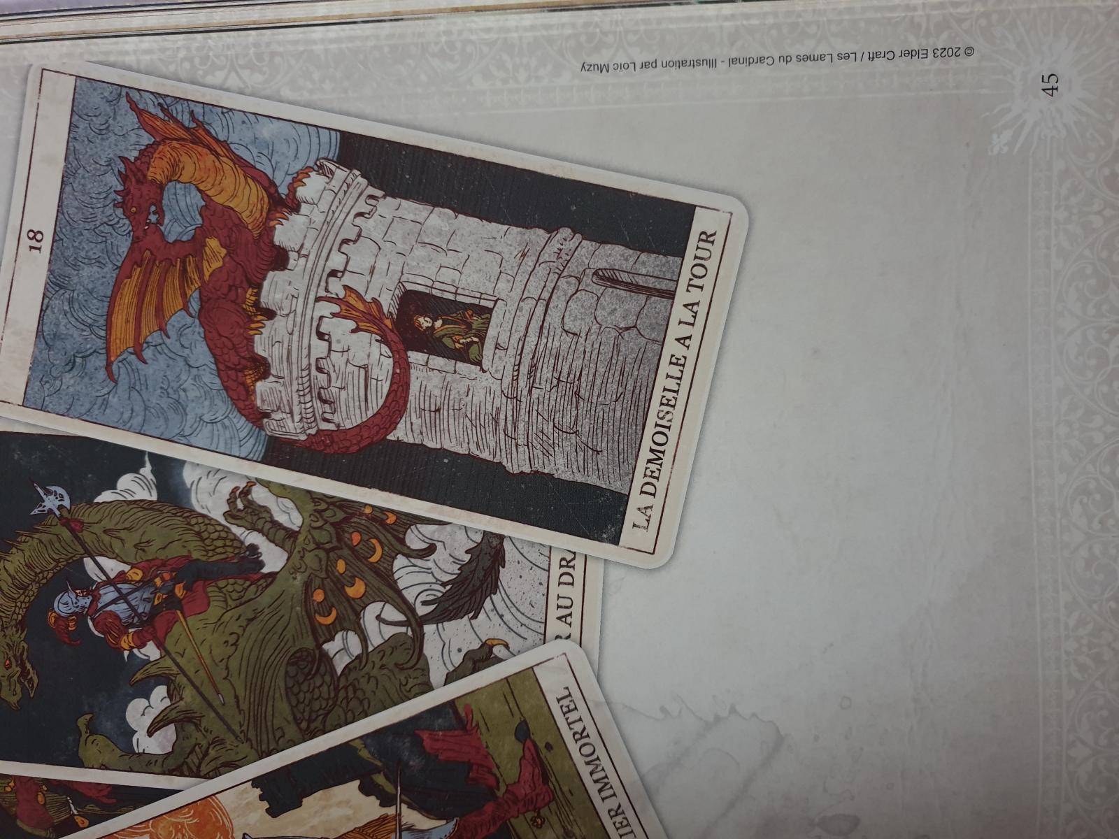 Le tarot...c'est sensé être le même dessinateur que la.v1 et bien...pour moi c'est raté...les cartes écailles...ressemblent à des poissons ça me tue le truc perso. Les arcanes et les figures font très tarot...de Marseille...et pas des ombres...je trouve qu'on est a côté de l'ambiance.