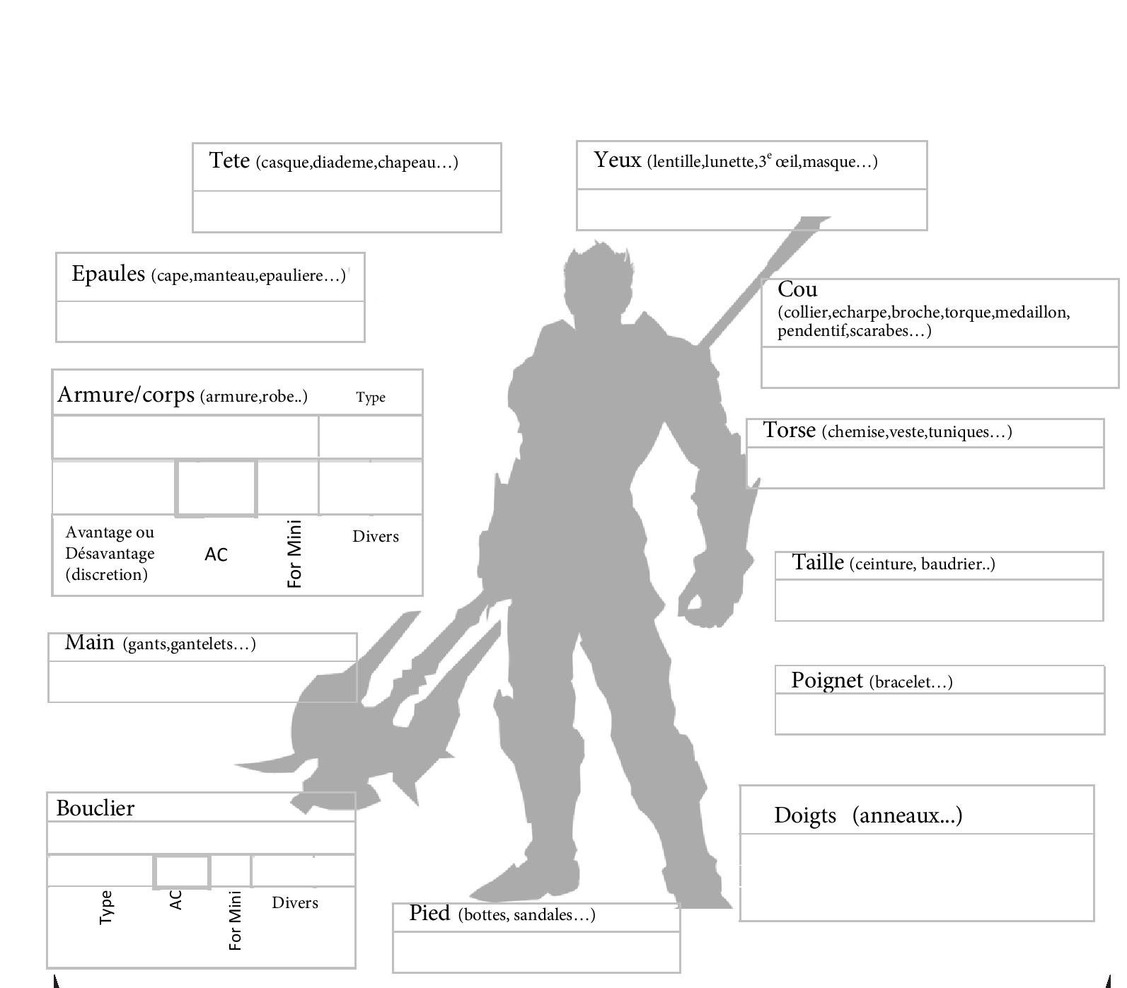 voire carrement le montage que j'avais fait, avec une localisation spéciale pour chaque partie du corps (d'accord, ma feuille d'équipement prenait une page complète content ):