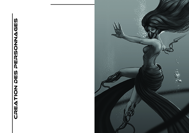 Comme je l'ai dit dans le dernier Casus Belli, les illustrations de Emmanuel Rodier sont tellement chouettes que c'est la classe aussi d'avoir un tel illustrateur pour un JdR et pour le coup le n&b lui va très bien. La couleur à tout pris n'est pas forcément indispensable dans un JdR, la preuve.