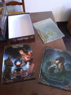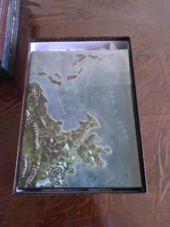 Alors dans la boite "jeu de rôle et d'aventure", j'avais le LdR, le bestiaire et la carte de l'Aventurie + 8 petites cartes.