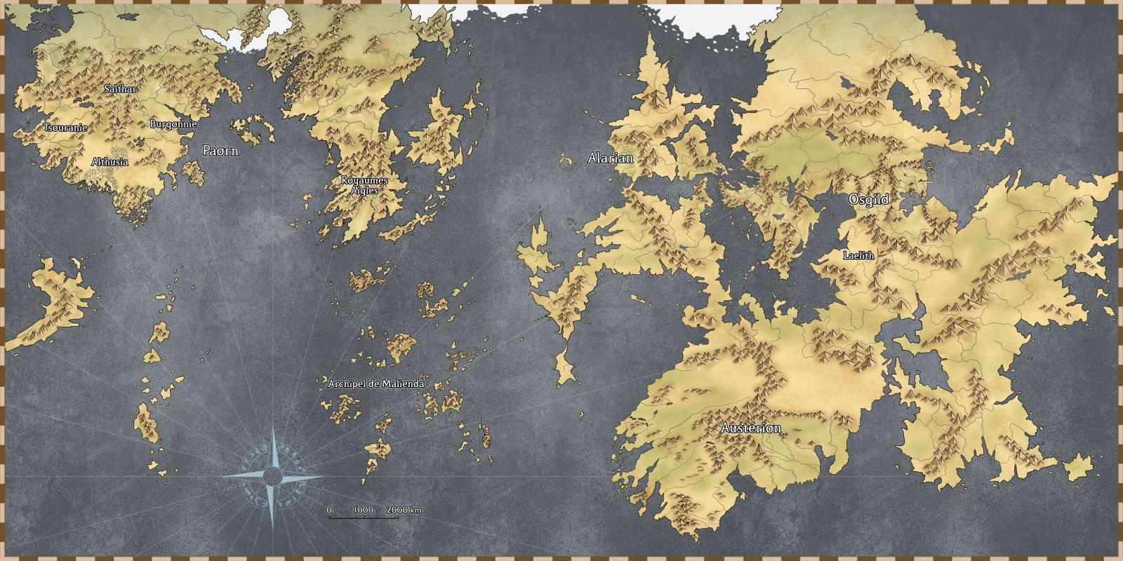 J'ai 2 questions à ce sujet : pourquoi as-tu reproduit Austérion différemment ? (je reconnais n'avoir trouvé que peu de sources sur cet univers). Ensuite, est-il possible de récupérer ta carte dans une version moins pixélisée et aussi nette que celle sur ce fil de discussion (mais sans Pangée...) ? Bon, puisque Noël approche, et si en plus c'est possible sans les noms... Mais ça, je sais faire. Sous Paintbrush, je sais, c'est horrible, mais c'est le seul logiciel "graphique" que je sais manier !
