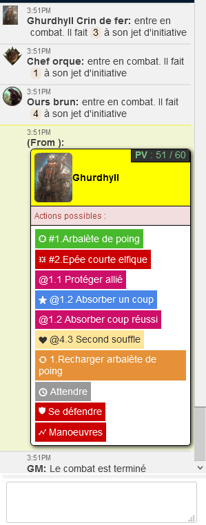 Voici la boite de dialogue que j'obtient avec cet unique perso. Il n'y a que ce token qui génére cette liste d'actions.
