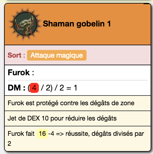 - Lorsqu'on utilise un élément particulier pour réduire les dommages par deux sur une AOE (par exemple "protectionDMZone_feu"), les dégâts sont divisés deux fois par deux. Une fois pour l'AOE et une fois pour le feu. EDIT : en fait, c'est la SAVE !! Tu penses qu'on devrait avoir les deux en même temps ? Ce n'est pas trop fort ?