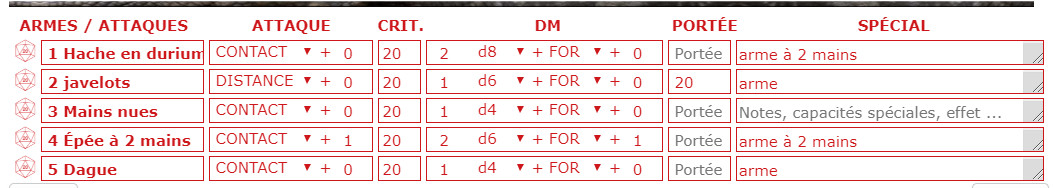- une option supplémentaire qui va rajouter à chaque attaque de contact et distance le choix Attaque normale, Attaque assurée, Attaque risquée automatiquement (pour les fainéants comme moi qui ne veulent pas coder dans chaque macro d'attaque)