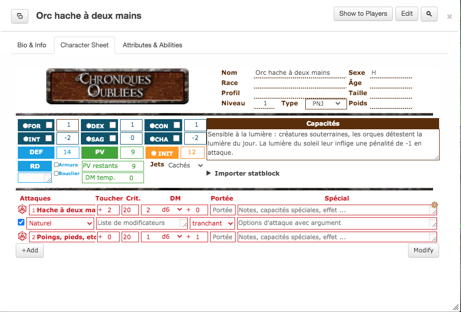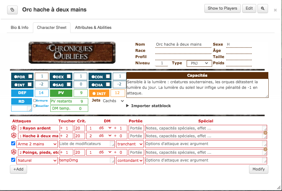 L'image que tu montres est celle d'un PJ est moi je parle de pnj basique comme un orc.