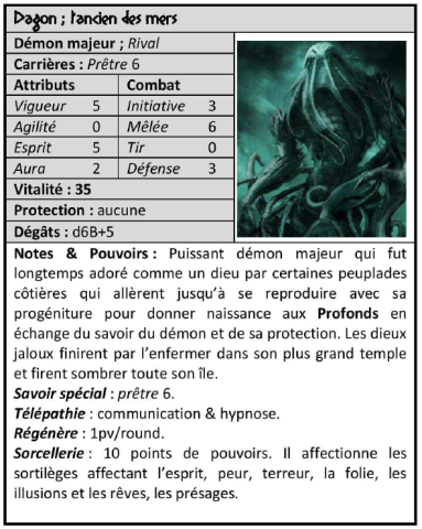 En cherchant bien, on trouve dans le jeu quelques créatures ou adversaires ayant 4 en défense. Il existe dans un scénario, un démon majeur avec 4 en défense, 2 en protection et 32 en vitalité, plus quelques pouvoirs de démon. Eh bien même contre cette redoutable créature le combat n'a pas été tellement long. Un des pj a bien failli être dominé mentalement (à 1 point près), ce qui aurait probablement tout changé, mais cela ne s'est pas produit.