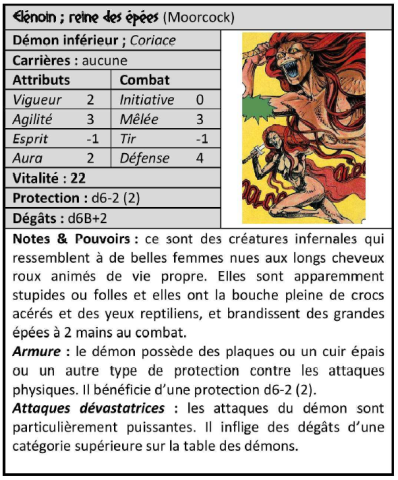 La reine des épées que tu présentes, c'est tout de même très fort pour un pnj "coriace", ça dépasse la plupart des "rivaux" présentés dans les bouquins. D'accord, c'est un démon, construit avec les points d'un démon inférieur, mais complètement optimisé pour la mêlée.