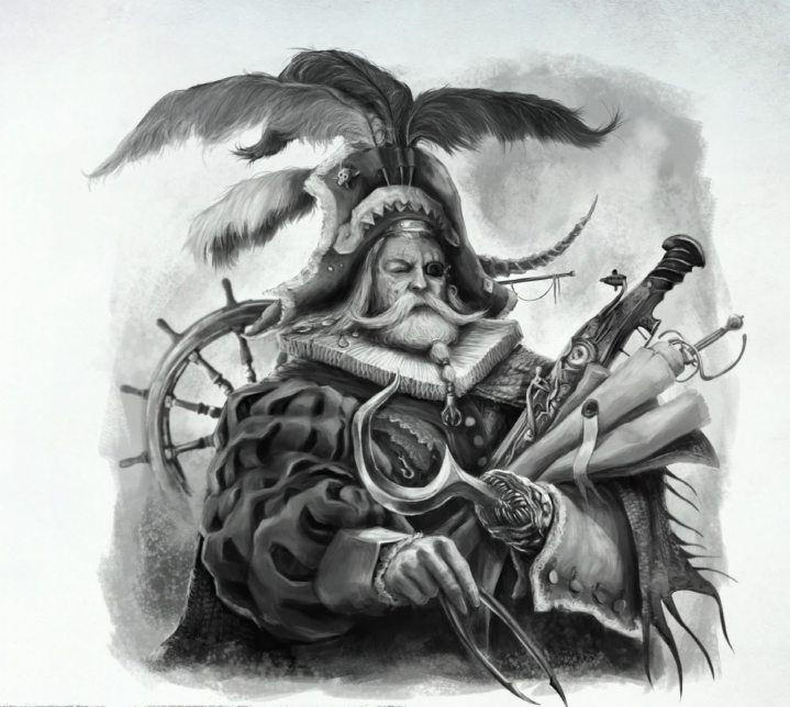 Bestiaire - CQFD un panel de monstres marins pour rendre la vie de votre équipage plus difficile. Sirènes, gargantuans, kharibdyss de Nagaroth , hydres squelettes et le terrible triton ! On finit par quelques célèbres capitaines/antagonistes : un pirate reconverti en chasseur de vampires, le terrible capitain nain pirate Long Drong Slayer, un champion du chaos Norsca et même un capitaine skaven !