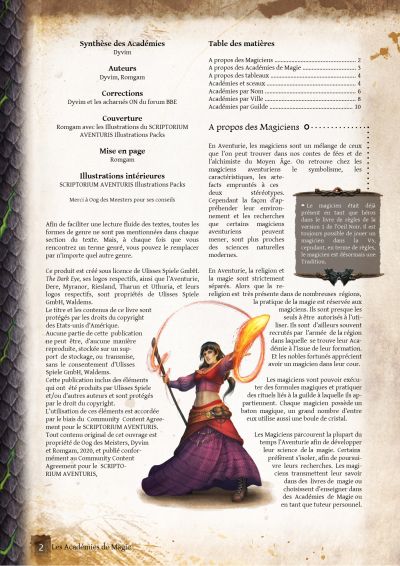 Comme vous pouvez le voir il devrait y avoir donc un petit passage sur les magiciens, un autre sur les académies puis les tableaux d'Oog/Dyvim, d'abord par Nom d'Académie, puis par Ville ou elle se situe et enfin par Guilde. Je ne pense pas qu'un tableau par domaine d'expertise soit pertinent, non par car ce n'est pas intéressant (au contraire) mais parce que cela sera le bazar. Bien sûr je n'ai pas utilisé l'écriture inclusive (gros oubli de ma part méa culpa) donc je vais sans doutes faire comme Ulisse juste rajouter un paragraphe pour indiquer que le genre de noms utilisé peut être modifié à volonté.