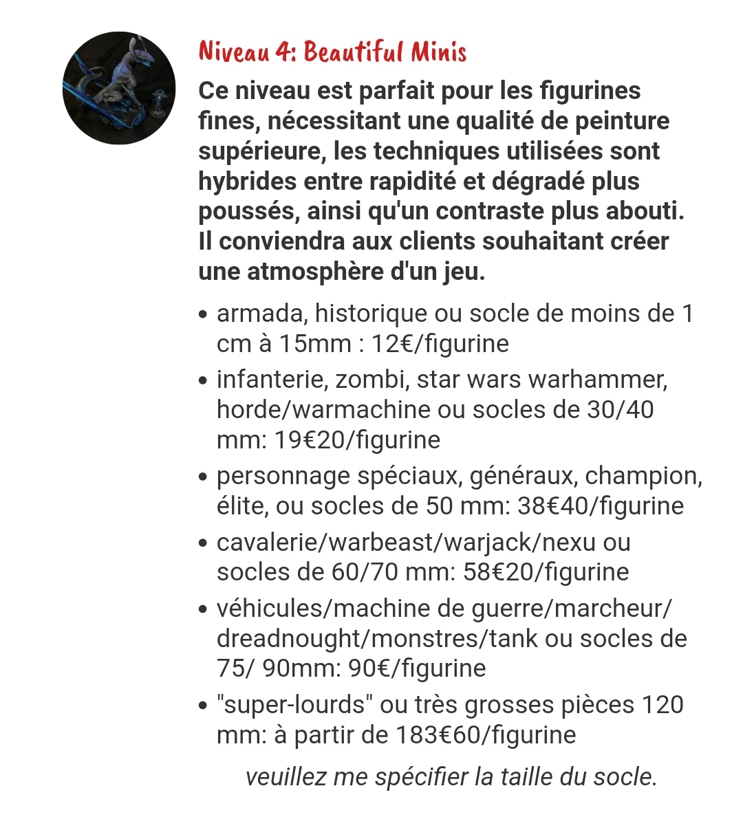 Quand à la peinture : le premier résultat de recherche Google pour un piéton en 28mm donne 15eur en qualité tabletop. Pour 20 balles j'ai des tarifs sans devis qui sont un poil plus quali