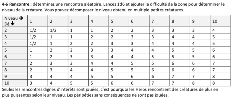 Petite question: je n'ai pas bien compris comment utiliser le tableau des rencontres en déplacement (ci-dessous). C'est quoi les chiffres du tableau ? Le niveau moyen du monstre rencontré ?
