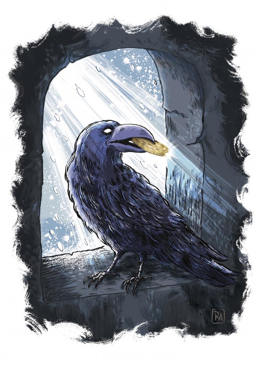 Avec ou sans poils, tout bon scénario devrait comporter une Cute Bestiole. Voici donc Corrina Corrina, la corneille du Fort Belanzo dessinée par Rackham le Roux.