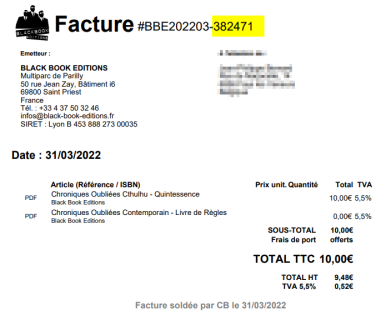 Exemple pour une facture d'un achat pendant la promo récente