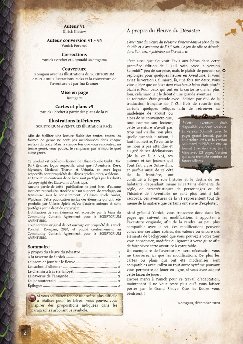 Cela sera mieux ici, un peu plus à propos même si cela fait un peu exhumation. Hop la petite mise en page en cours de l'adaptation v1=>v5 du Fleuve du désastre de Yanick P avance lentement mais elle avance.