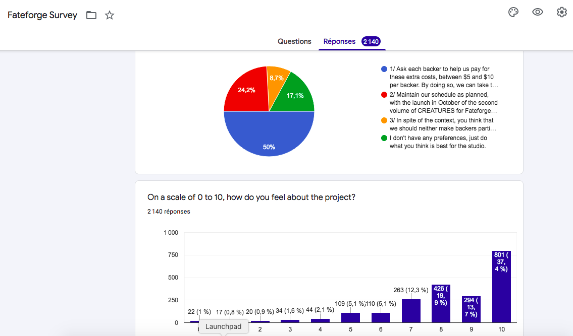 Alors il y aurait, à date, 988 réponses FR et 2140 US, et les US sont à fond réponse 1.