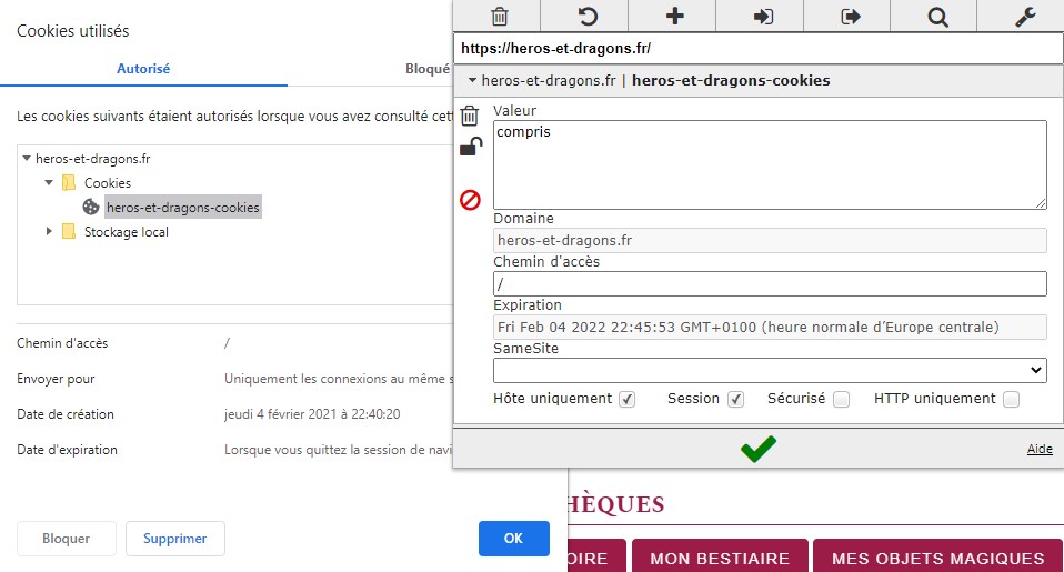 Du coup quand je regarde ce cookie je vois que sa date d'expiration c'est la fin de ma visite sur le site. Mais quand je veux éditer le cookie via un module sur chrome je retrouve dans le champs d'expiration la date d'aujourd'hui plus un an.