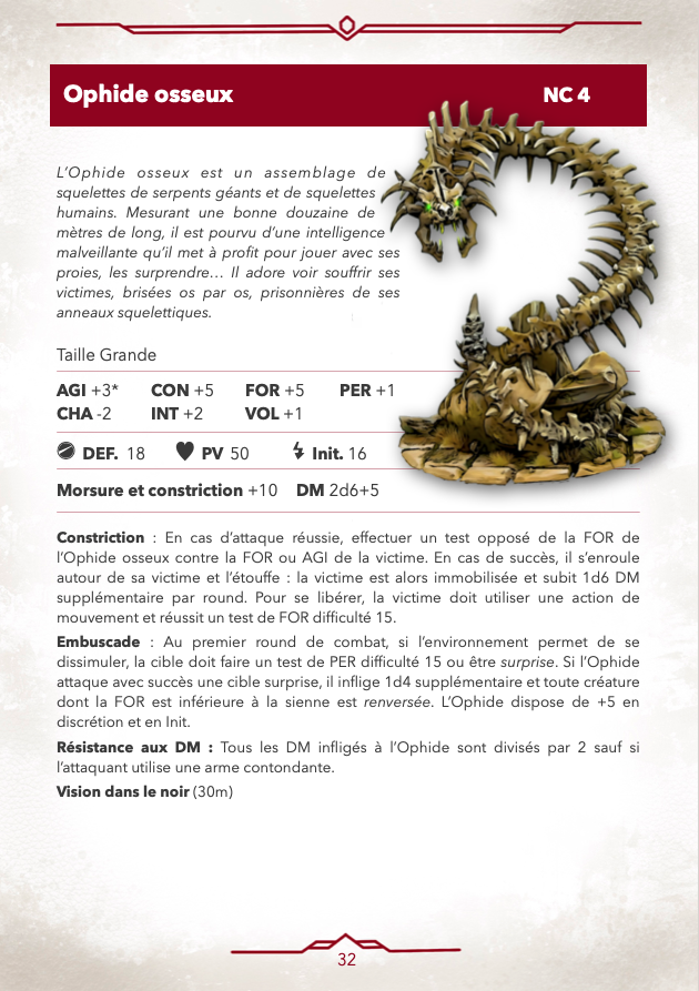 54 créatures (y compris une dizaine de classiques qui disparaitront quand le bestiaire officiel sortira). C'est un livret A5 pour :