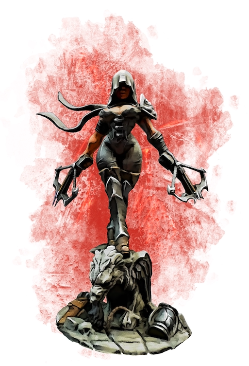 Une peint'illustration d'une chasseuse de prime (la figurine faisait la silhouette du livret des fiches de PJ) :