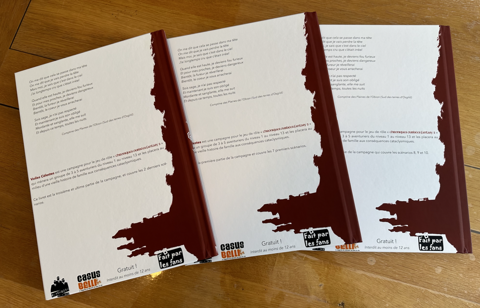 Je souhaiterais identifier 3 MJs, parmi vous, qui ont prévu de se lancer dans la campagne des Voiles en COF2 dans les 6 prochains mois. Je propose alors de donner un exemplaire physique du livre I sous 3 conditions :