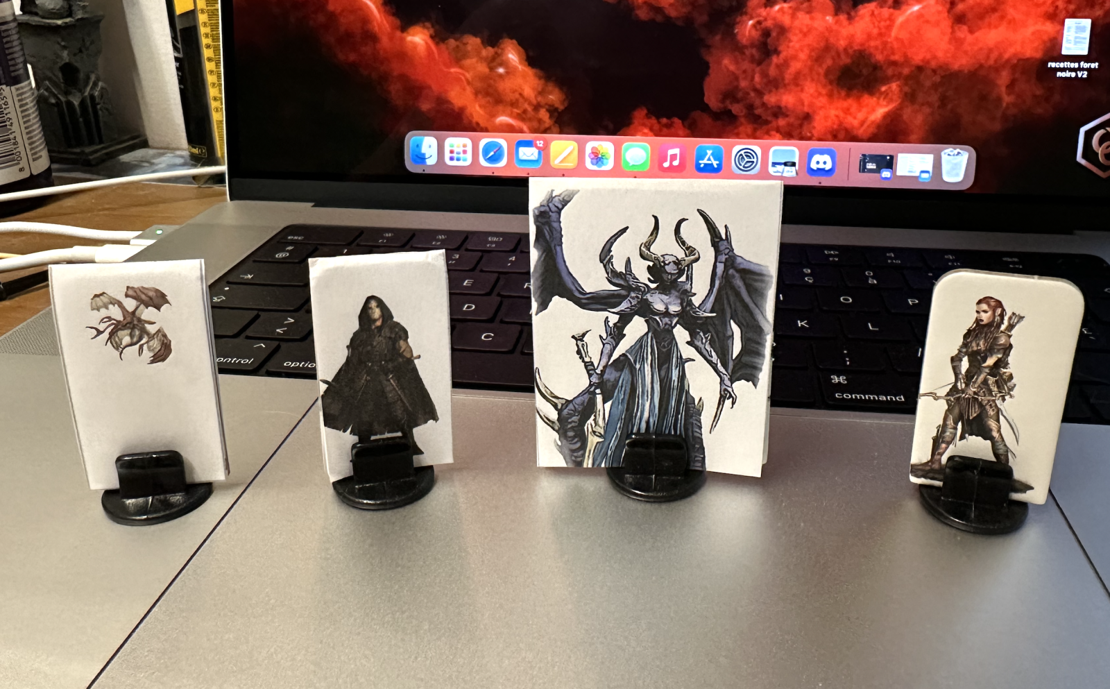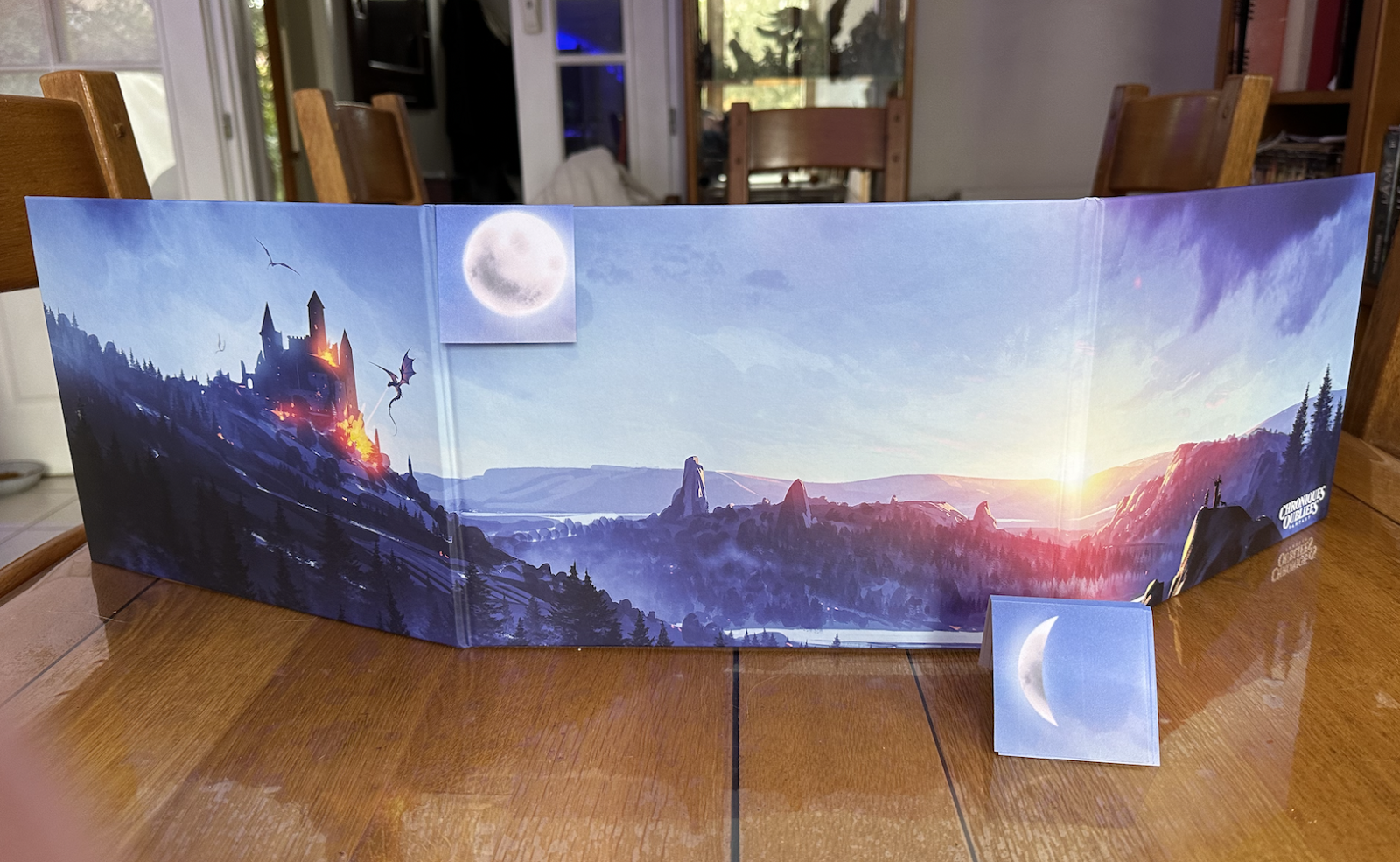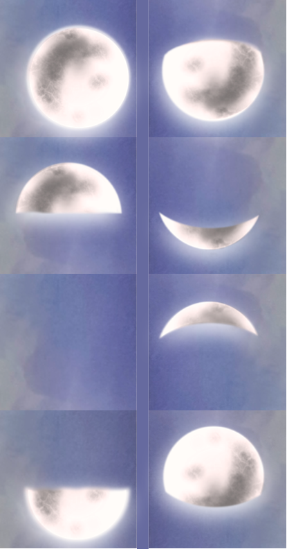 Suite à la dernière partie cette semaine, compte tenu de l'importance de la lune, je me suis fait la réflexion que les joueurs pouvaient ne pas savoir dans quelle phase lunaire les PJs se trouvaient. J'ai créé des petits mementos qui s'intégrent à peu près sur le paravent COF2.