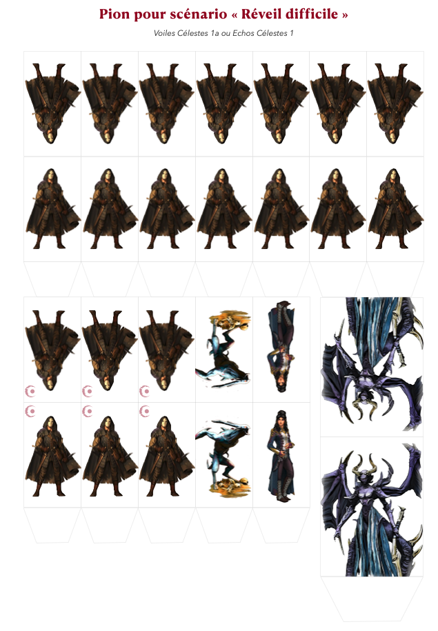 Suite à un échange fructueux avec Moupyu, on a conçu des pions pour le premier scénario de la campagne ou d'Echos Célestes.