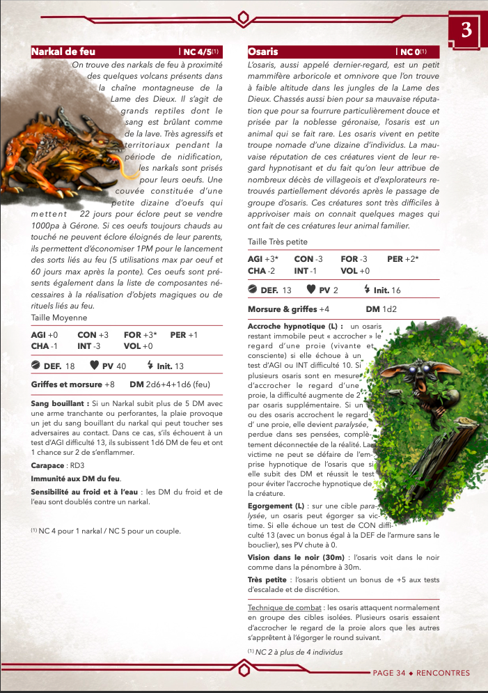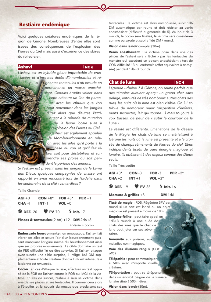 - Extension Gérone : ajout d'un lieu singulier (la fumerie, l'Oniris), d'un nouveau PNJ (un Arpenteur des rêves avec une nouvelle voie spécifique) et de 6 créatures endémiques de la région