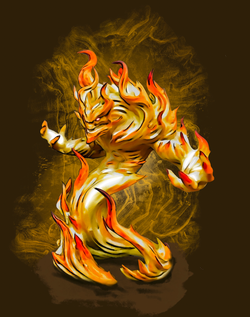 et une dernière peint'illustration d'un élémentaire du feu qui peut remplacer celle déjà présente dans le livre III (cliquez pour zoomer)