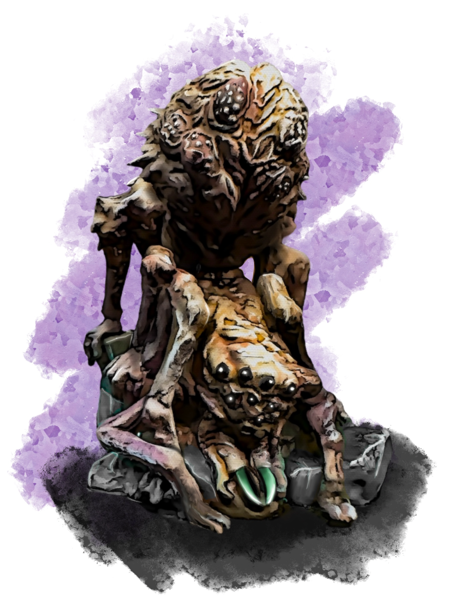 Issue de mon projet du moment qui n'a rien à voir avec les Voiles (peinture des dernières saisons de Cthulhu Death May Die), une peint'illustration qui pourrait convenir au scénario 4 et son araignée-démon. Une alternative donc :