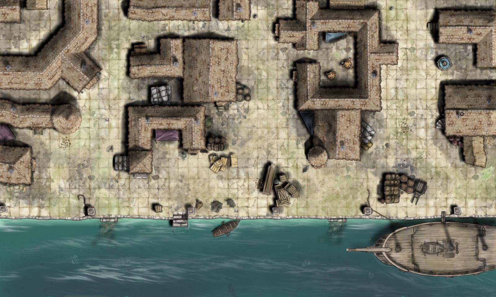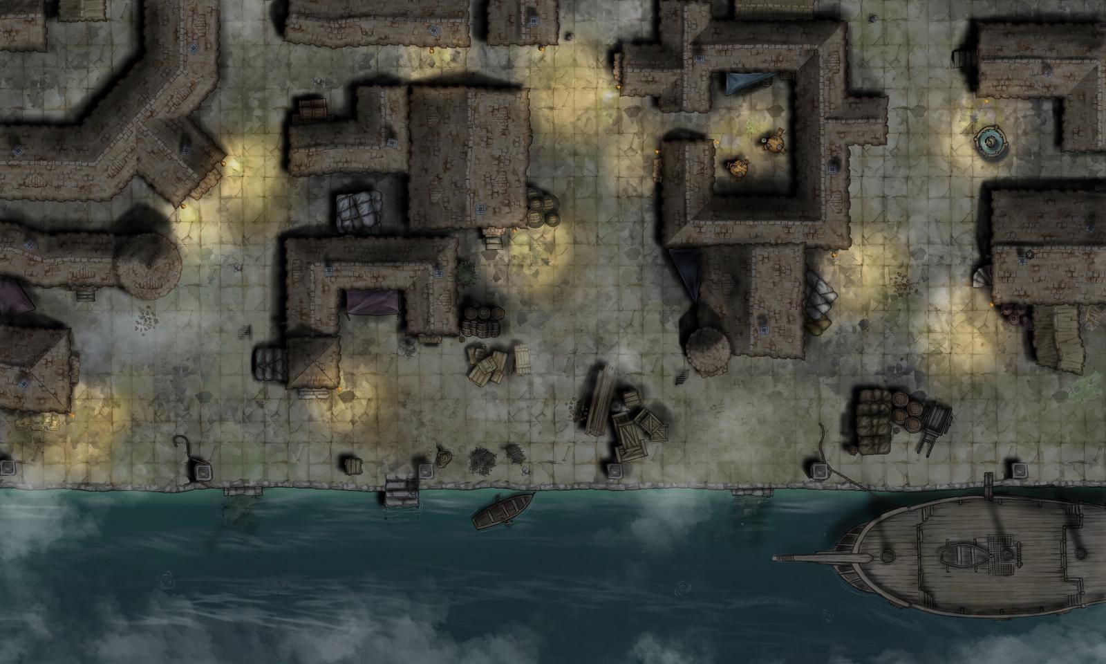 Deux battlemaps pour changer. Les quais de Gérone pour le retour des PJs à la cité.