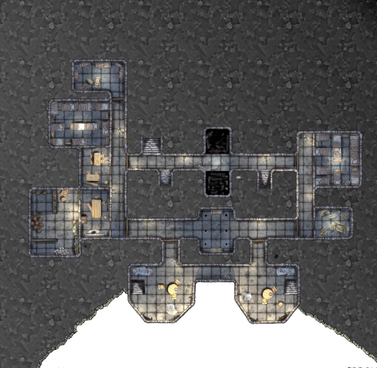 Le pack de Battlemaps pour le 10ème scénario est bien avancé et en le faisant, j'ai essayé d'ajouter un fond sombre pour le fond des maps des souterrains. J'ai appliqué la même chose sur les cartes du 9ème scénario. C'est plus pour les parties à distance car ce n'est pas printer-friendly du tout. Les 2 options seront de toute façon systématiquement disponibles à partir de maintenant. Dites-moi ce que vous en pensez.