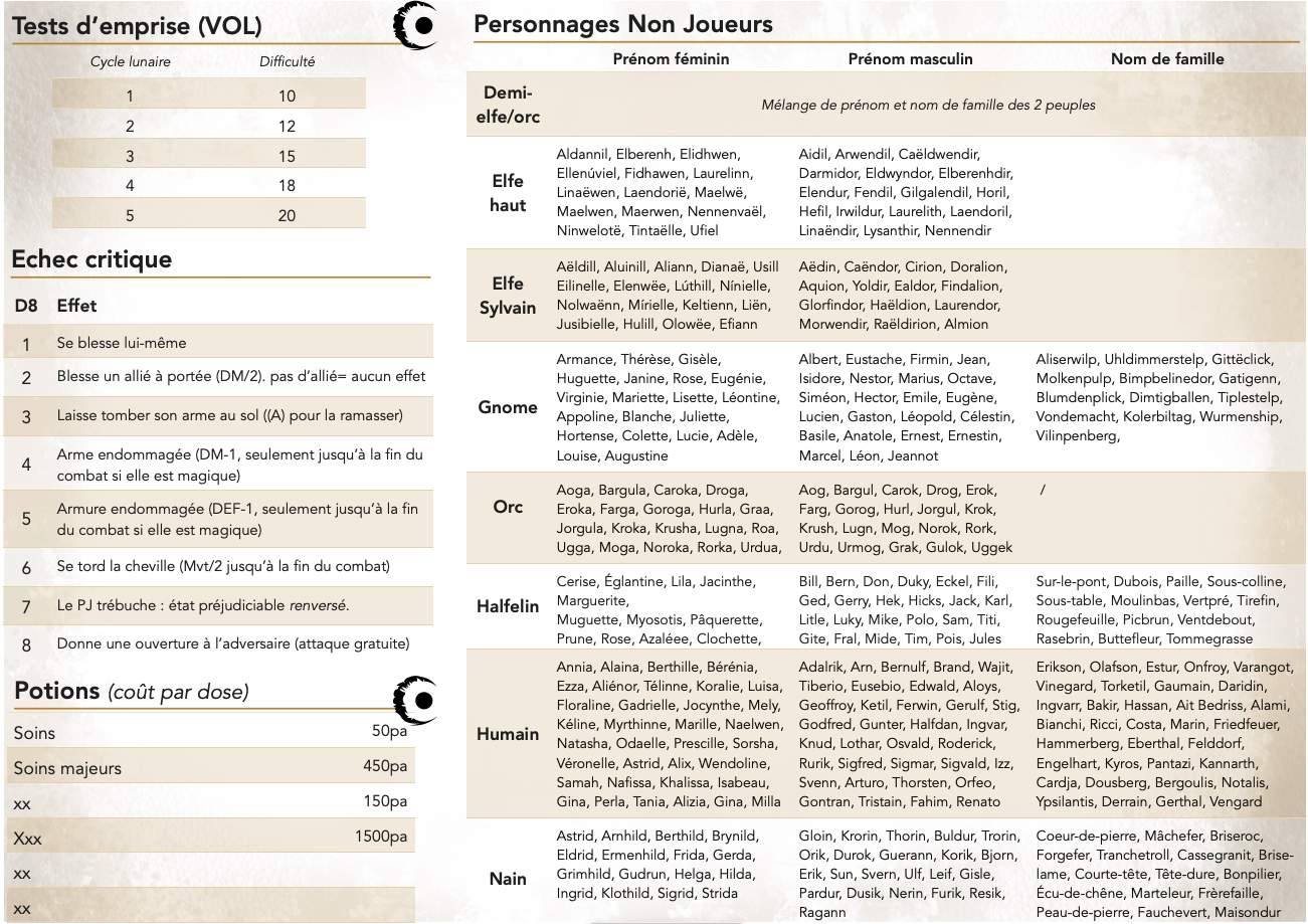 Une liste de noms pour des PNJ aléatoires classés par "origines" et genre, c'est toujours utile.