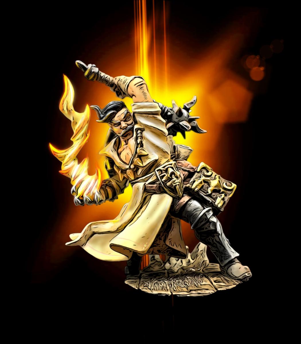 Au fur et à mesure des travaux sur les peint'illustrations, j'avais de plus en plus de doutes sur le résultat qui devenait "trop réaliste". La peint'illustration de l'inquisiteur de Solar me gênait pour cela : figurine au top, peinture ok mais résultat pas assez "dessin". J'ai repris le sujet avec un autre filtre et je trouve cela mieux.