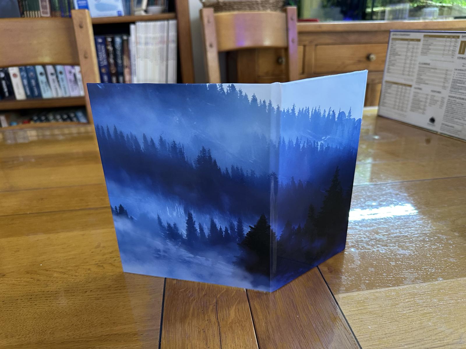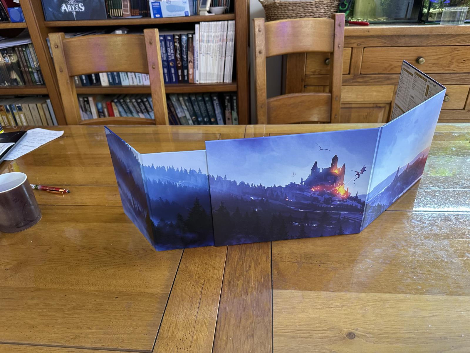 Avec du papier pour autocollant et du carton plume/mousse, j'ai pu tester l'extension d'écran. Cela fait propre. Le fichier pour réaliser cet écran est dans le fil de tête. Entre ce que j'ai pu réaliser et le fichier, j'ai juste modifier l'image d'illustration (côté joueur) pour la rendre un peu plus violette et en accord avec le paravent officiel.