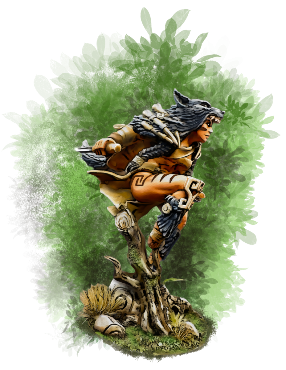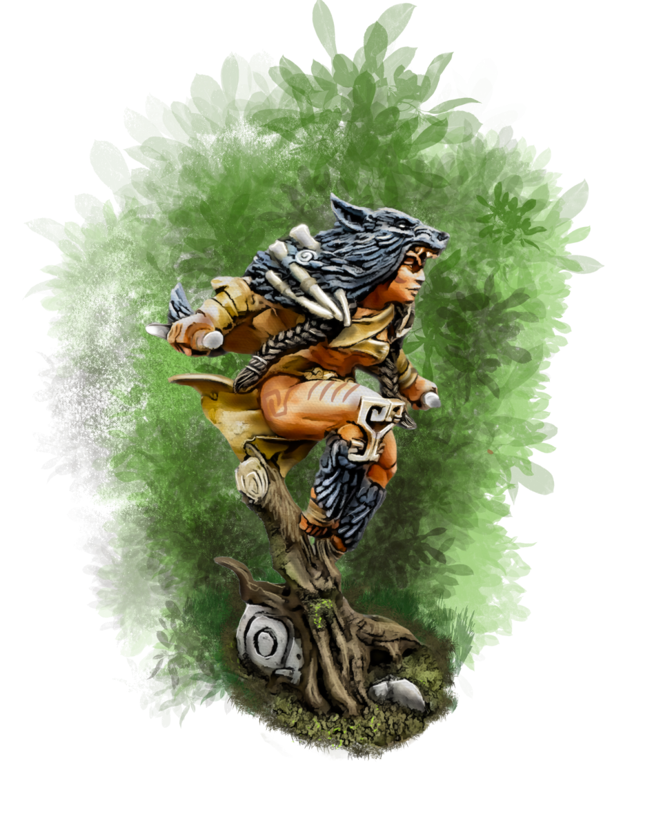 La peinture de la grande chasseuse du scénario "Sang Divin" n'est pas terminée mais j'ai voulu voir ce que cela pourrait donner en peint'illustration. Finalement, c'est correct et cela ne sera peut être pas mieux quand elle sera terminée. Je vous la livre donc :