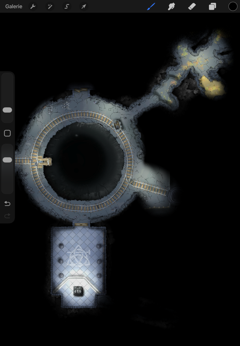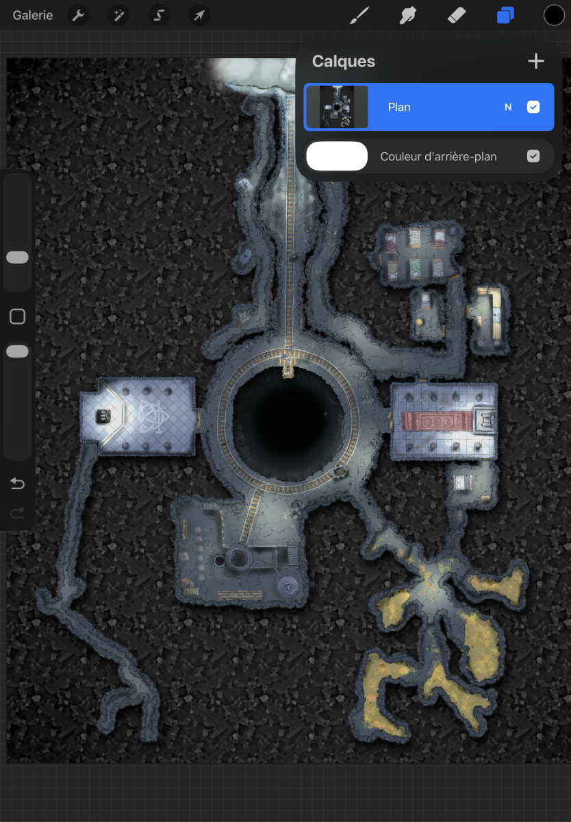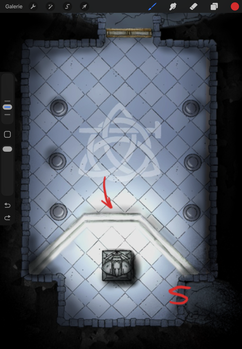 Pour être honnête, après avoir fait autant de battlemaps pour la campagne, j'étais un peu frustré de ne pas pouvoir vraiment les utiliser pendant mes parties : je n'ai pas vraiment l'imprimante pour de grands plans et tout dessiner systématiquement sur le floorplan vierge pour des lieux où il n'y a pas de phases tactiques, c'est trop long. De plus, je ne peux évidemment pas partager la carte complète. Il me faut un fog of war comme sur les plateformes virtuels