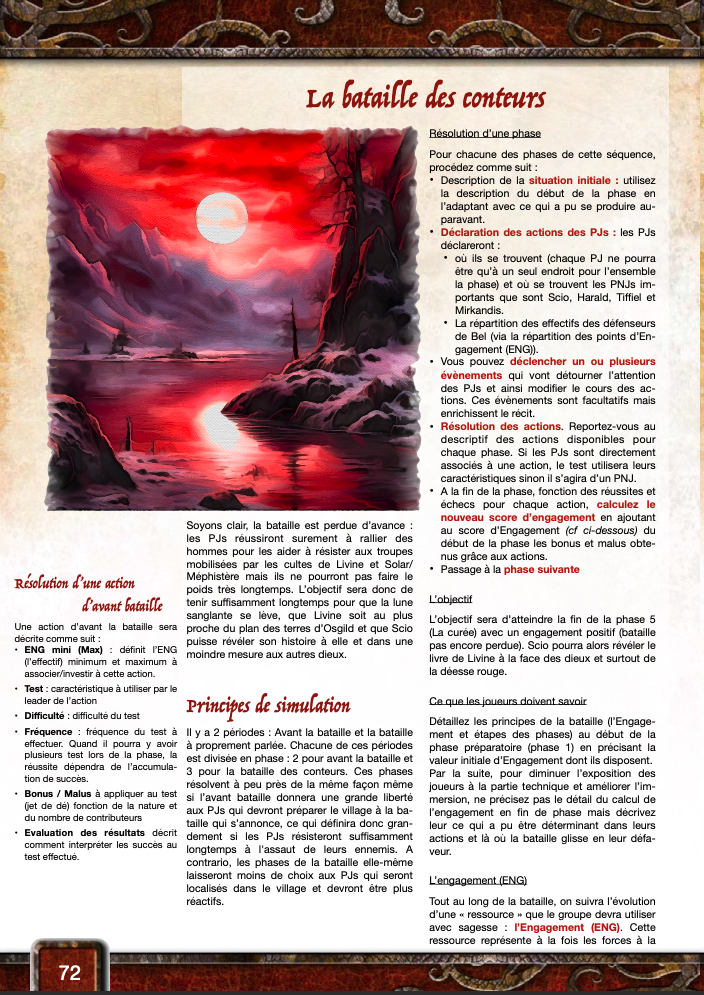 et se terminera par une bataille au lac des contes (au sud du bois Sacryfal, dans les contreforts des monts Ogredents), ce qui sonnera normalement le glas du culte de Livine :