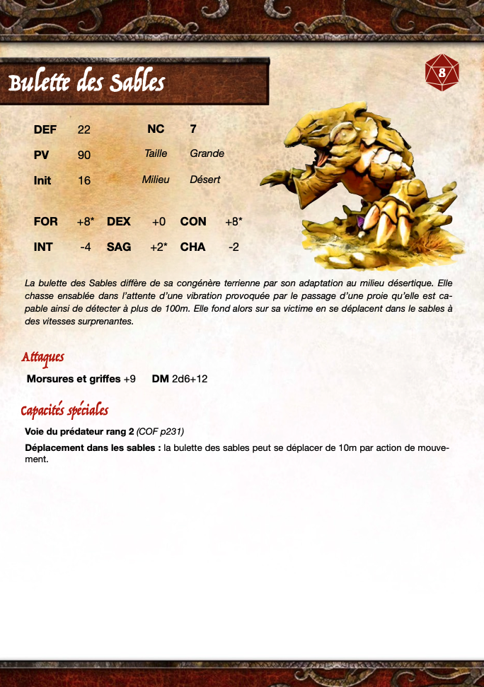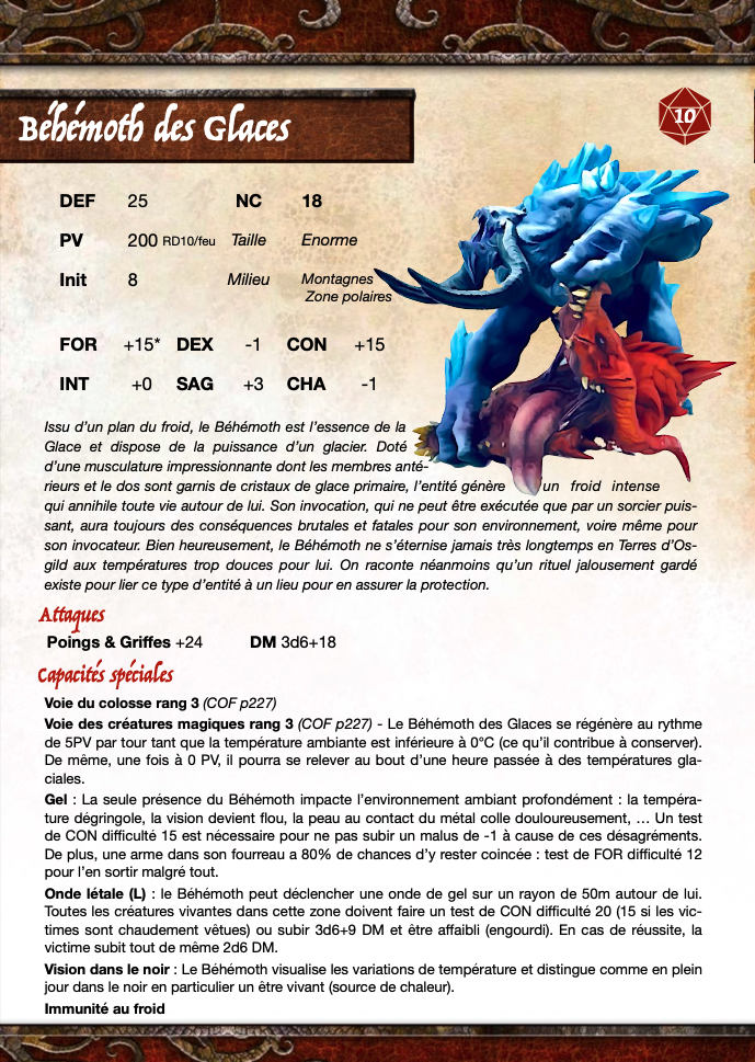 J'ai eu la flemme sur le bestiaire et je n'ai fait qu'une version car, en plus, un bestiaire sans image, c'est comme du fromage sans pain, il manque quelque chose
