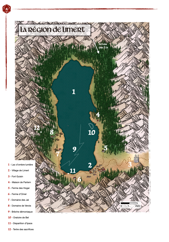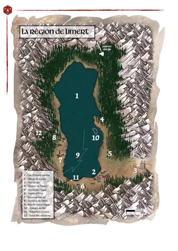 J'en ai profité pour reprendre la carte de la région de Limert pour lui donner un peu plus de vie et la rendre moins "carrée". C'est à jour dans les accessoires du MJ et à la prochaine diffusion pour le livre I :