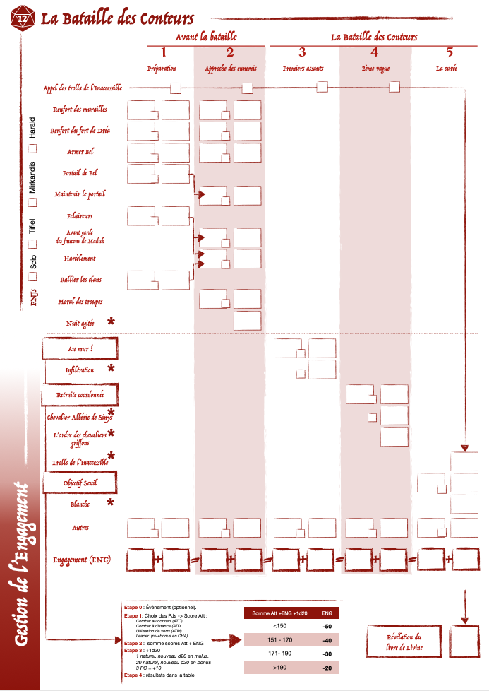J'ai terminé la V1 de livret d'accessoires du MJ (Plans (+ grands) et quelques outils (comme une fiche pour la gestion de la bataille finale)). C'est ici ou dans les liens du post de tête.