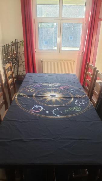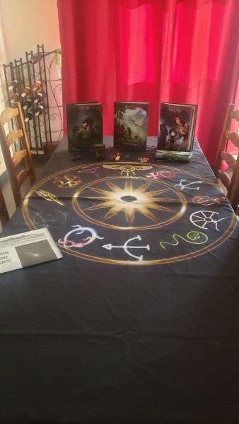 J’ai trouvé cette superbe nappe sur le site allemand https://www.metalmotte.de/ (il faut fouiller un peu et stock limiter) et il y a pleins d’articles sur le thème L’œil noir (donc l’onglet DSA) : tissus, chaussettes, coussins, etc. Allez faire un tour