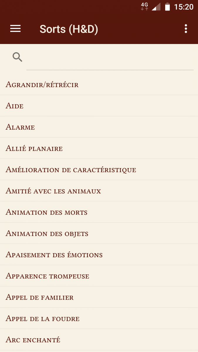 C'est vraiment une super appli! Je ne sais pas si ça s'inscrit dans ton idée pour cette appli, mais pouvoir se faire des sorts "favoris" comme un grimoire pour les joueurs, ce serait vachement cool ! ;D Sinon je confirme l'idée de Mrick, avoir les statuts préjudiciable facilement accessible ce serait très pratique