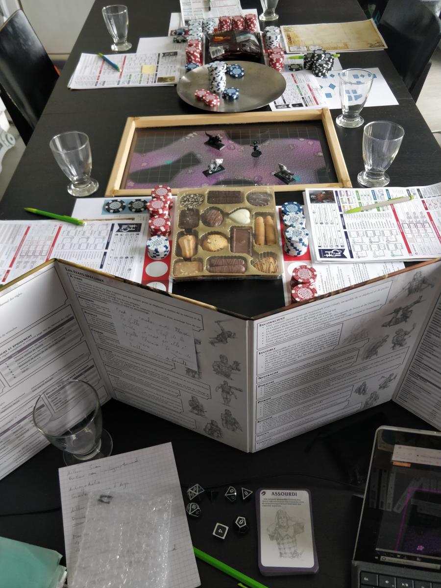 Et bien moi je n'aime pas du tout cette table ! Tout est occupé par l'écran, les joueurs n'ont presque plus de de place pour poser leur feuille et d'éventuelles notes, etc... L'écran c'est bien, c'est un plus, mais tout ne doit pas tourner uniquement autour de ça AMHA.