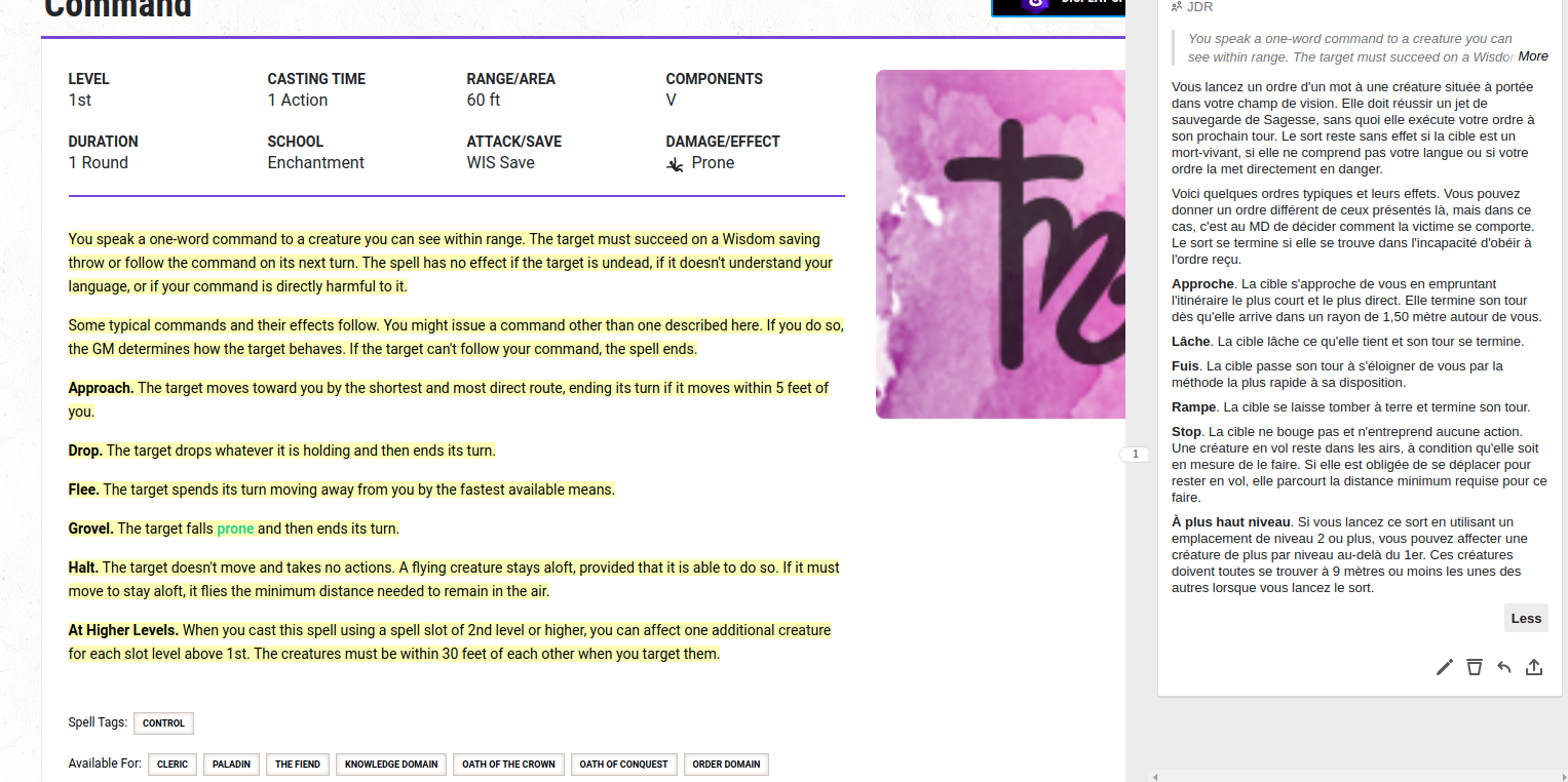Juste pour pousser un outil sympa applicable à DND Beyond pour traduire en français et partager sur un groupe privée ou public