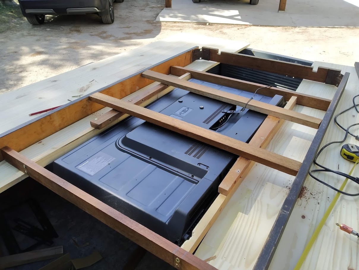 Possesseur d'une table Ikéa avec rallonges, j'avais pour idée de remplacer une des 2 rallonges par une TV 32" avec les dimensions qui allaient bien.